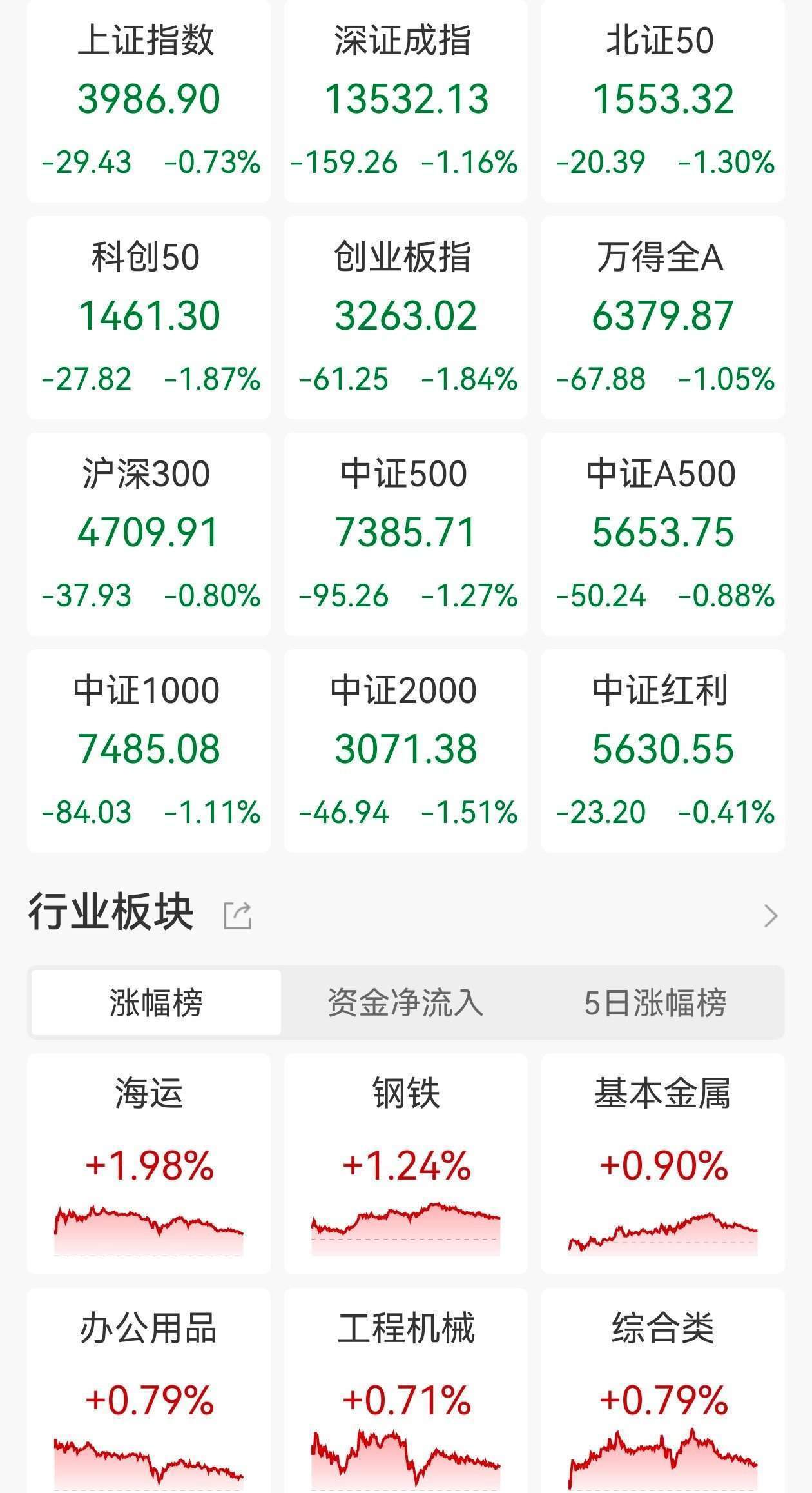 格隆汇10月30日|A股三大指数今日集体下跌,截至收盘,上证指数跌0.73%,深证成指跌1.16%,指跌1.84%,北证50跌1.3%。沪深京三市全天成交额24643亿元,较上日放量1736亿元。全市场4100只个股下跌。板块题材上,能源金属、钢铁、量子科技、电池、风电设备、港口航运、磷化工板块涨幅居前;CPO、PET铜箔、煤炭开采加工、游戏、光刻机、证券板块跌幅居前。