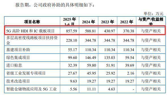 5年过去了,5G高阶HDI和IC载板项目建设进度如何?是否实现了预期收入?中国网财经在给红板科技的采访函中问及,但没有获得正面回复。不过,根据招股书,2022-2024年及2025年1-6月,红板科技5G高阶HDI和IC载板项目获得的政府补助金额分别为370.38万元、430.97万元、588.81万元和857.59万元。