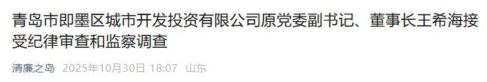 青岛市即墨区城市开发投资有限公司原党委副书记、董事长王希海涉嫌严重违纪违法,目前正接受青岛市即墨区纪委监委纪律审查和监察调查。