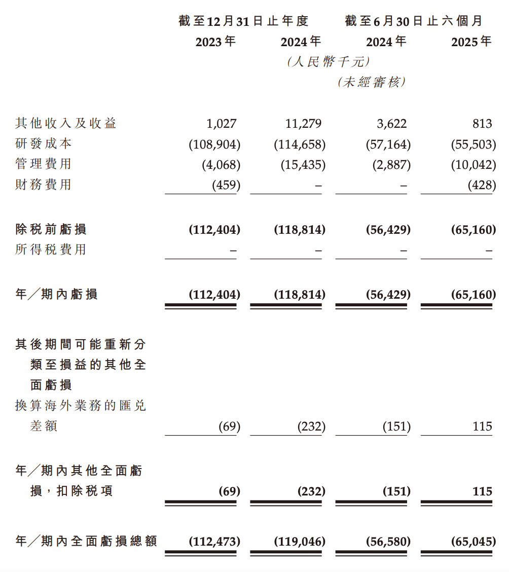 2023年,蓝纳成研发投入1.09亿元,2024年增加至1.15亿元,2025年上半年已达5550万元,不到三年累计研发支出2.8亿元。同期,营业收入为零,净亏损则从1.12亿元扩大至1.19亿元,今年上半年再亏6516万元。