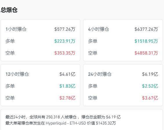 此外,值得注意的是,11月7日,加密货币市场全线跳水,比特币一度再次失守10万美元整数关口。数据显示,24小时内,全球超25万人爆仓。
