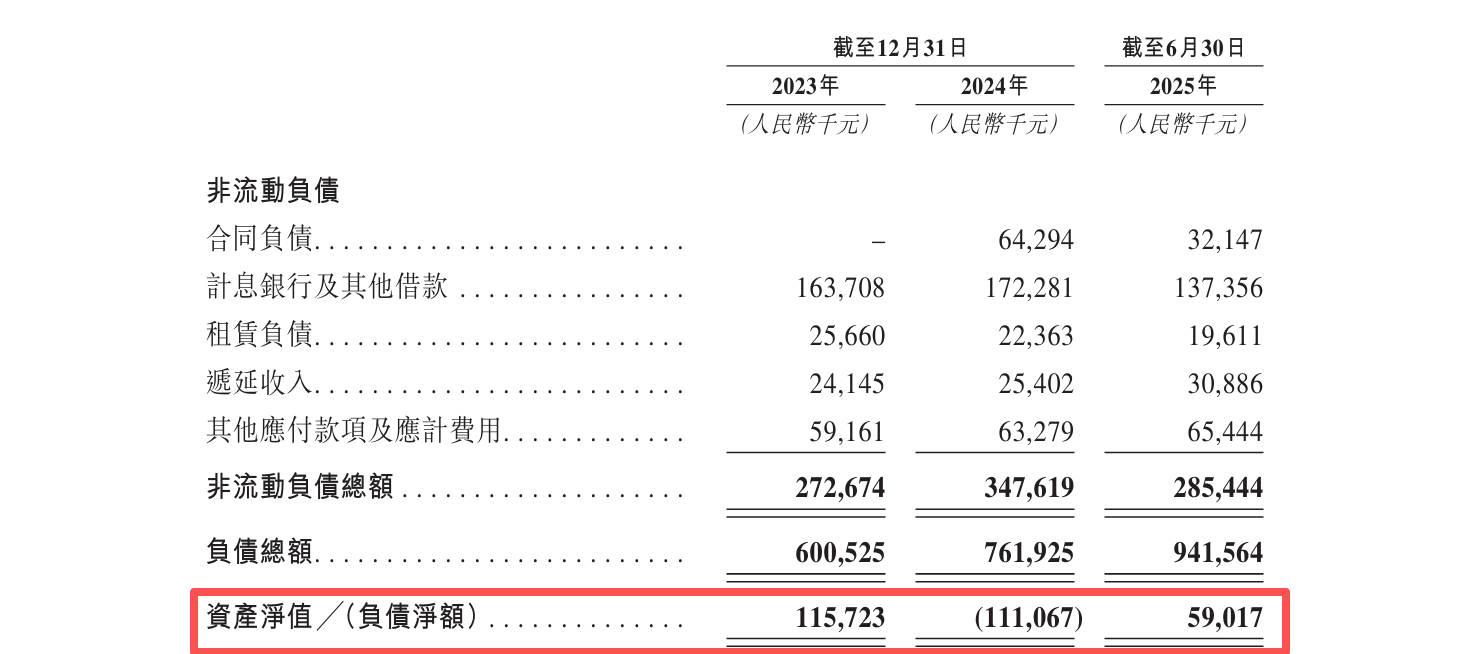 记者注意到,瑞博生物2024年的净资产一度跌入负值区间。各报告期末,公司的总资产规模依次约为7.16亿元、6.51亿元和10亿元,而负债总额则分别为6亿元、7.62亿元和9.42亿元。据此计算,其资产净值分别为1.15亿元、-1.11亿元和0.59亿元。