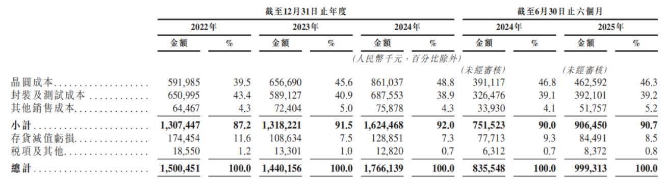 圣邦股份的供应商主要包括晶圆代工厂以及封测服务商,晶圆成本、封装及测试成本占据其销售成本的大头。各期,圣邦股份销售成本分别为15.01亿元、14.40亿元、17.66亿元、9.99亿元,其中晶圆成本、封装及测试成本合计占比82.9%、86.5%、87.7%、85.5%,2022年-2024年,占比和金额双双走高。需要警惕的是,一旦主要供应商出现产能不足、产品质量问题或者合作关系发生变动,都可能对圣邦股份的生产和销售造成影响。