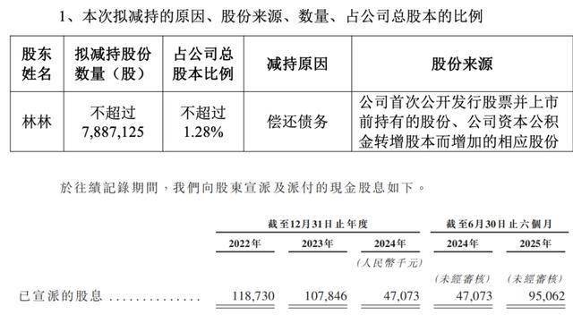 目前林林直接持股比例为5.10%,减持比例约为其持股数量的25%,报告期内并未从公司领取薪酬,不过期内圣邦股份合计现金分红3.69亿元。