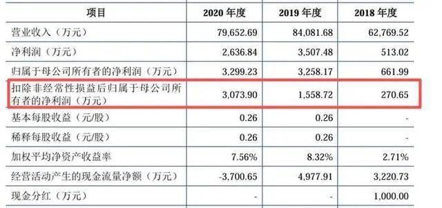而2021年11月17日发布的问询函回复显示,2018年-2020年以及2021上半年,扣非归母净利分别为-6.74万元、1300.78万元、2832.77万元和257.28万元。