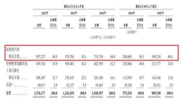 招股书显示,菲仕技术2025年中期收入的增长主要由于新能源汽车解决方案业务收入的增加,期内实现收入5.49亿元,较去年同期的2.09亿元,大增162.68%。这部分业务收入占总收入的比重也从2024年同期的36.3%,快速提升至60.4%。