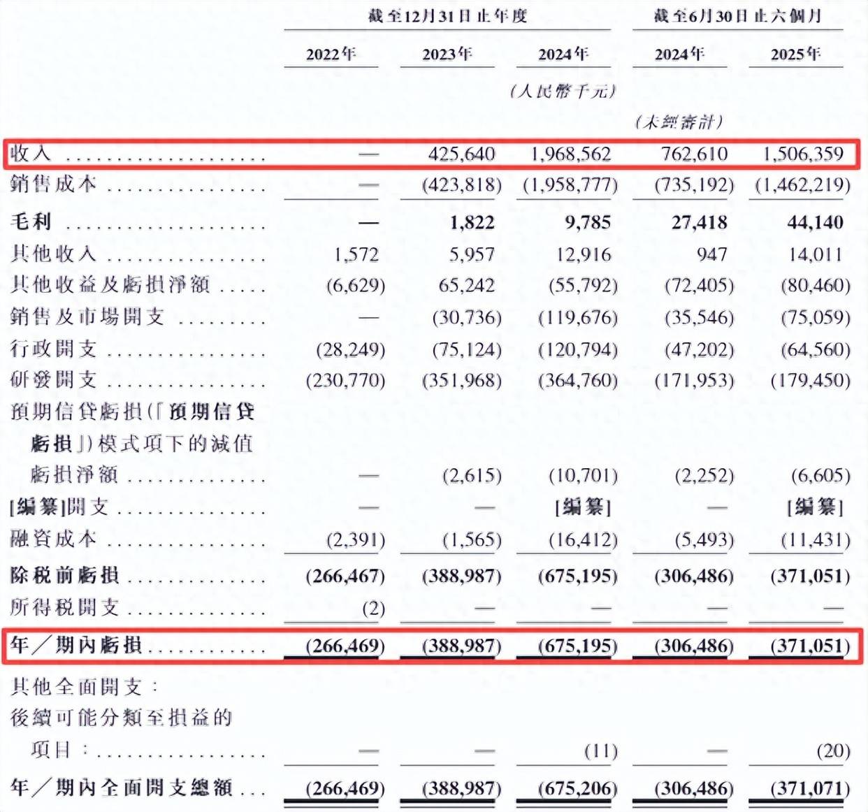 业绩方面,报告期内,深向科技的收入分别为0、4.26亿元、19.69亿元和15.06亿元,同期亏损分别为2.67亿元、3.89亿元、6.75亿元和3.71亿元。也就是说,三年半时间,公司累计亏损17.02亿元。其中,2024年公司的收入虽然同比大幅增长362.5%,但净亏损却从上年的3.89亿元扩大至6.75亿元,出现“增收不增利”的情况。