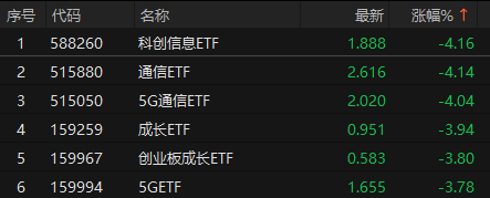 11月10日,ETF午间收盘涨跌不一。上涨方面,旅游ETF(159766)涨5.19%,旅游ETF(562510)涨4.74%,酒ETF(512690)涨3.29%。跌幅方面,科创信息ETF(588260)跌4.16%,通信ETF(515880)跌4.14%,5G通信ETF(515050)跌4.04%。