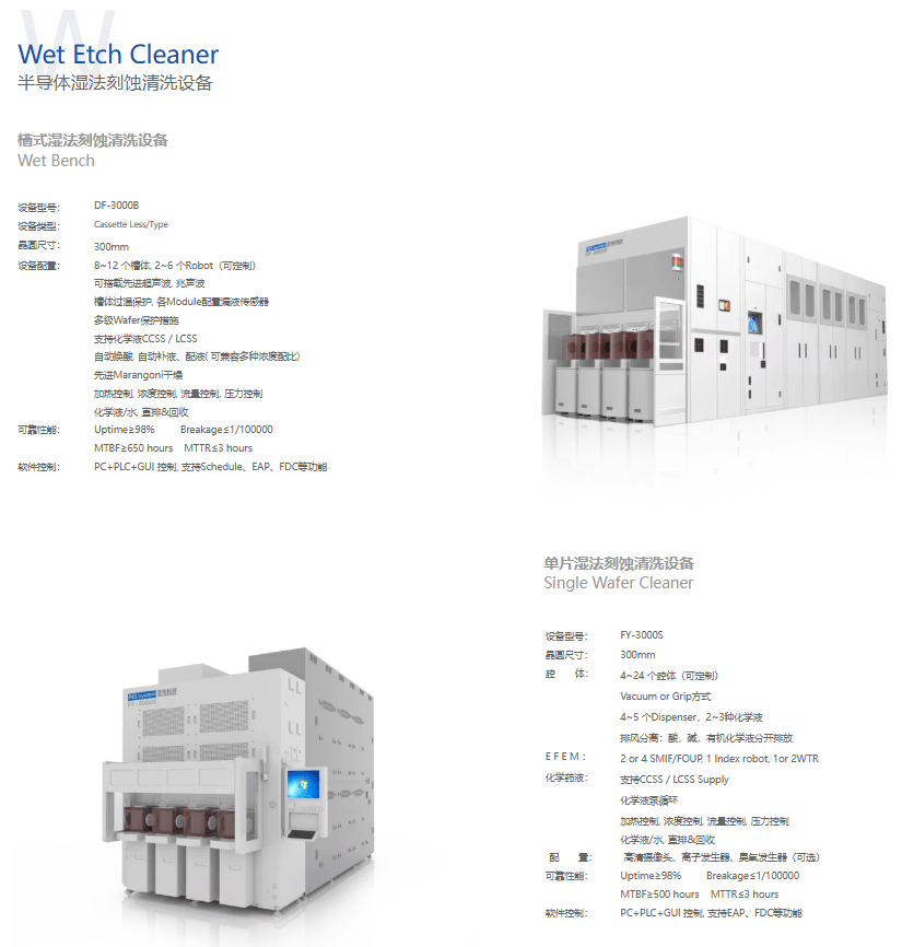 顾名思义,湿法清洗设备就是用于清除晶圆表面纳米级微观颗粒、金属、有机物及氧化物等污染物的专用设备。由于不同生产环节会产生不同类型的污染物,清洗设备需应用于氧化/扩散、光刻、刻蚀、掺杂、成膜等所有工序环节。