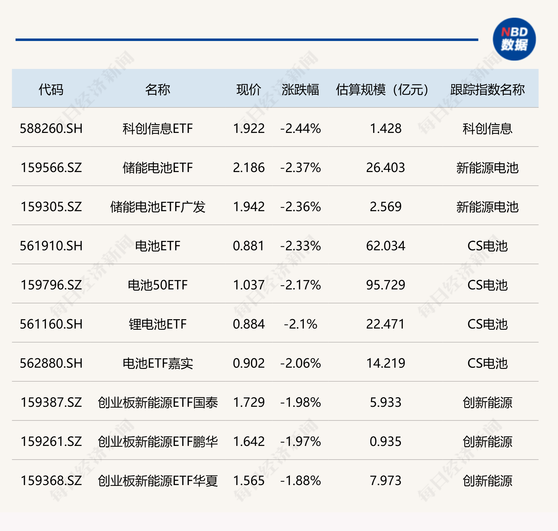 下跌方面,多只电池相关ETF跌超2%。