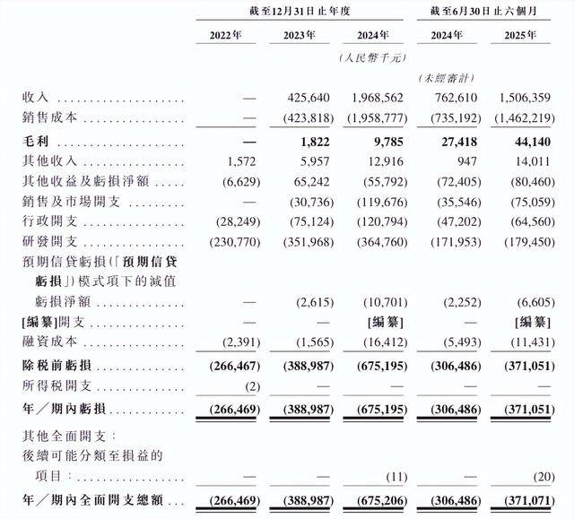 业绩方面,2022年-2025年上半年,深向科技分别为0元、4.26亿元、19.69亿元和15.06亿元,收入从0元增长至超15亿元,尽管营收增长迅速,公司目前尚未实现盈利。2022年至2024年期间,深向科技亏损持续扩大,分别为2.67亿元、3.89亿元和6.75亿元。2025年上半年亏损3.71亿元,截至2025年6月30日,累计净亏损已超过17亿元。其中,2024年公司的收入虽然同比大幅增长362.5%,但净亏损却从上年的3.89亿元扩大至6.75亿元,出现“增收不增利”的情况。