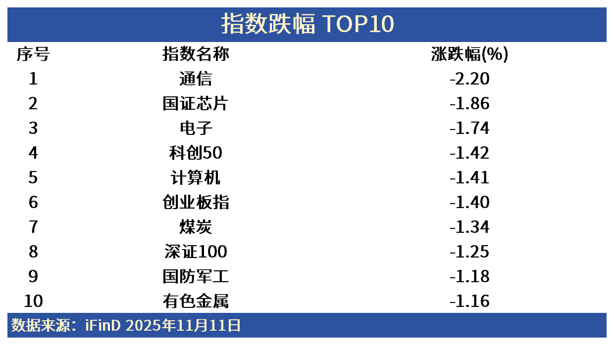 截至2025年11月11日A股收盘,通信回调2.20%,天孚通信、剑桥科技跌幅居前。电子回调1.74%,香农芯创、普冉股份跌幅居前。