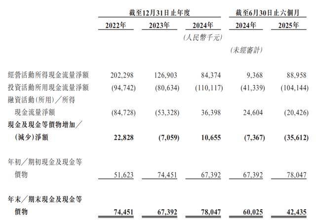 高额回购支出让溜溜果园本就紧张的现金流雪上加霜。招股书显示,溜溜果园2025年上半年流动负债高达10.05亿元,其中计息银行借款由去年年末的3.21亿元增至3.99亿元,而期末现金及现金等价物由去年年末的7804.7万元下降至4243.5万元,可见其短期偿债能力压力较大。