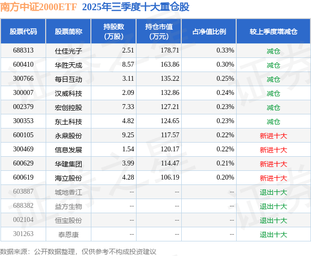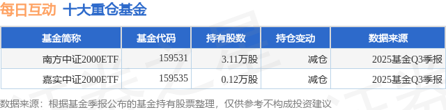 根据2025基金Q3季报公募基金重仓股数据,重仓该股的公募基金共2家,其中持有数量最多的公募基金为南方基金的南方中证2000ETF。南方中证2000ETF目前规模为5.43亿元,最新净值1.3723(11月11日),较上一交易日上涨0.38%,近一年上涨26.63%。该公募基金现任基金经理为李佳亮。李佳亮在任的基金产品包括:南方MSCI中国A50互联互通ETF,管理时间为2021年10月29日至今,期间收益率为7.13%;南方MSCI中国A50互联互通ETF联接A,管理时间为2022年1月10日至今,期间收益率为16.97%;南方北证50成份指数发起A,管理时间为2022年12月23日至今,期间收益率为39.2%;南方中证主要消费ETF,管理时间为2023年3月3日至今,期间收益率为-19.46%。