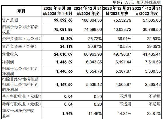 2022-2024年及2025年1-6月,有研复材的营业收入分别是4.14亿元、4.98亿元、6.1亿元和2.4亿元,归母净利润分别是5830.55万元、5387.87万元、6554.78万元和1440.66万元,经营活动产生现金流量净额分别是2181.45万元、6629.9万元、-706.07万元和-2120.85万元。