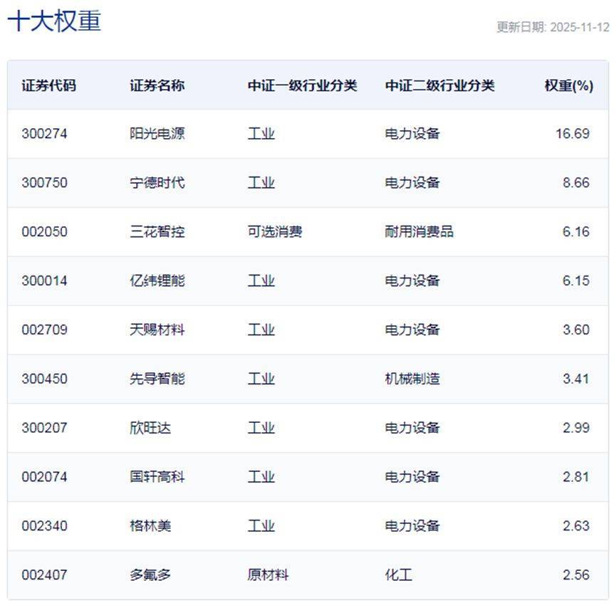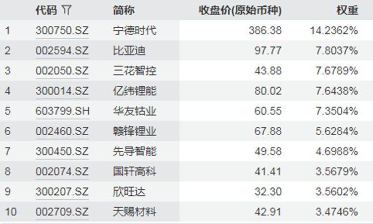 国证新能源车电池指数主要权重股