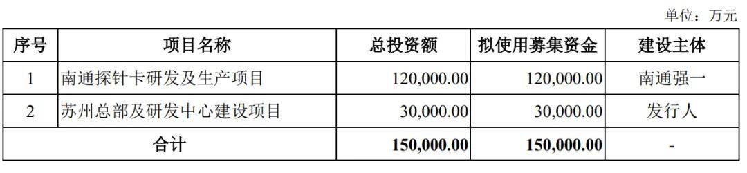 强一股份计划募资15亿元,其中,12亿元用于南通探针卡研发及生产项目,3亿元用于苏州总部及研发中心建设项目。