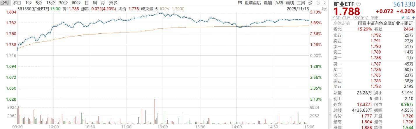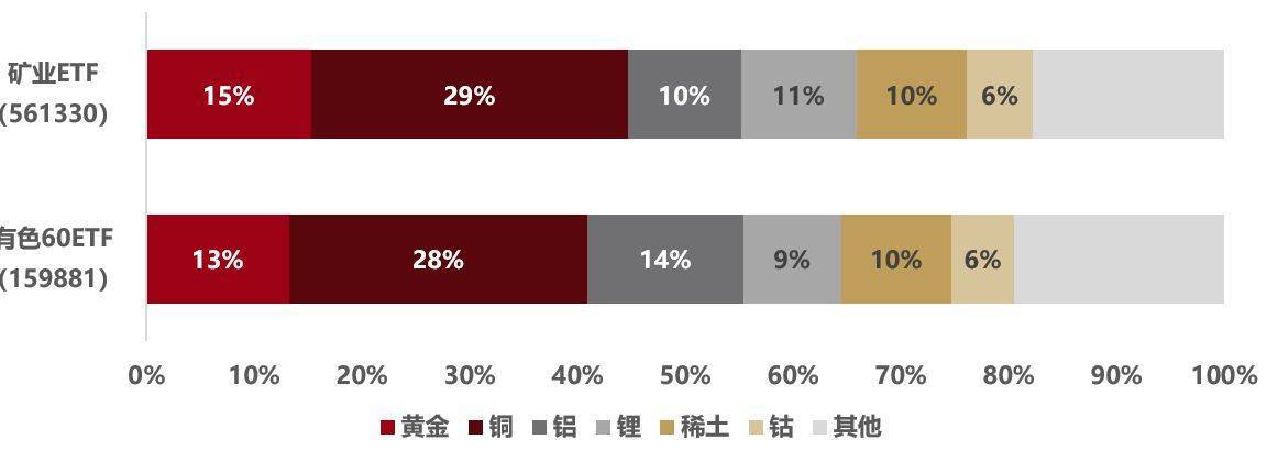 金融属性和商品属性共振,有色金属板块有望多点开花。投资者可以关注聚焦拥有有色金属矿产资源的矿业ETF(561330)和工业金属、贵金属、能源金属与小金属全覆盖的有色60ETF(159881)。从行业分布看,矿业ETF和有色60ETF中的黄金、铜、铝、锂累计占比均超过60%。(数据来源:Wind,截至2025/11/12。行业分布按照申万三级行业分布计算。)感兴趣的投资者可以保持跟踪,把握有色板块中长期的投资价值。