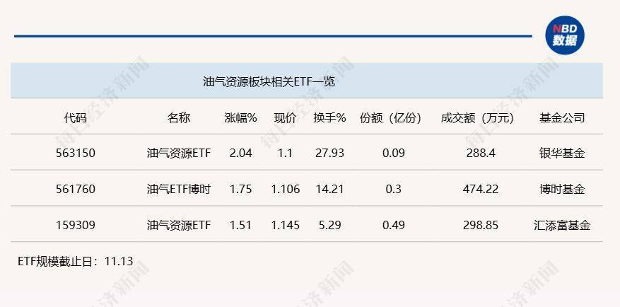 ETF涨幅榜上,油气资源ETF(563150)半日涨幅达到2.04%,是今日ETF市场唯一涨幅超过2%的品种,另外两只油气资源ETF半日涨幅也超过1.5%,涨幅靠前。