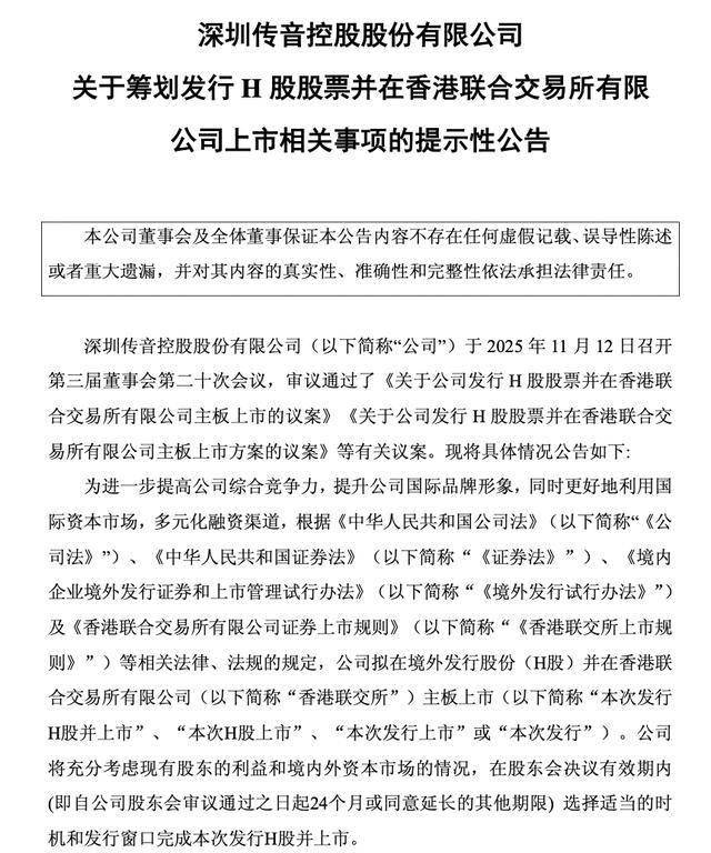 传音控股表示,公司将充分考虑现有股东的利益和境内外资本市场的情况,在股东会决议有效期内 (即自公司股东会审议通过之日起24个月或同意延长的其他期限) 选择适当的时机和发行窗口完成本次发行H股并上市。