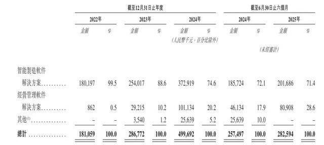 智能制造软件解决方案是赛美特的主要收入来源,各期业务收入占比总收入的99.5%、88.6%、74.6%、71.4%。