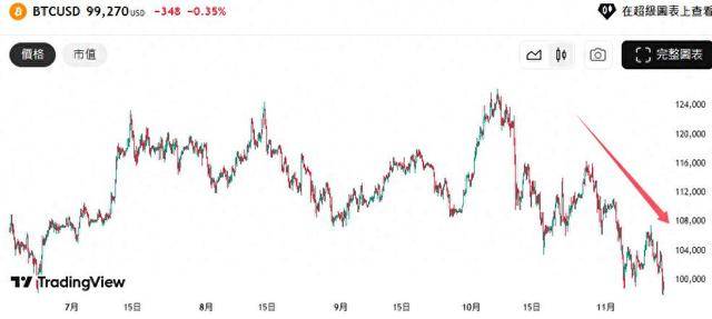 受美联储降息预期降温、新一轮避险情绪和科技股惨遭抛售拖累,比特币周四跌破了10万美元大关,加剧了自10月初以来导致市值蒸发超过4500亿美元的颓势。