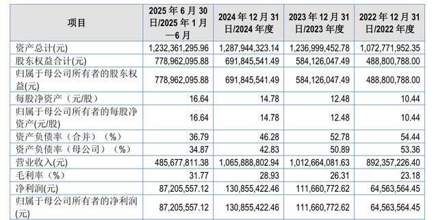 业绩方面,报告期(2022年至2024年、2025年上半年)各期,通领科技分别实现营收约8.92亿元、10.13亿元、10.66亿元、4.86亿元,归母净利润约6456.36万元、1.12亿元、1.31亿元、8720.56万元。