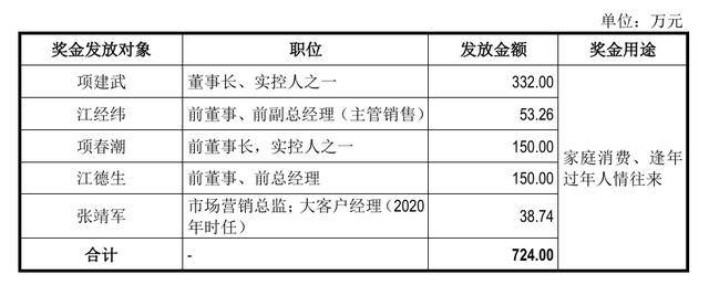 通领科技回复称,2020年,公司通过购买购物卡的方式向项春潮、江德生、项建武、江经纬及张靖军五人发放奖金共计724万元,相关个人已缴纳完毕其所收取购物卡奖金部分相关个人所得税。相关资金用途均为家庭日常开支、购买艺术品、缴纳税款或现金备用金、逢年过节亲属间人情往来,均系合理用途,未发现相关款项曾流向公司的客户或供应商的痕迹,因此未发现相关事项存在体外资金循环、为公司代垫成本费用、商业贿赂等的风险。