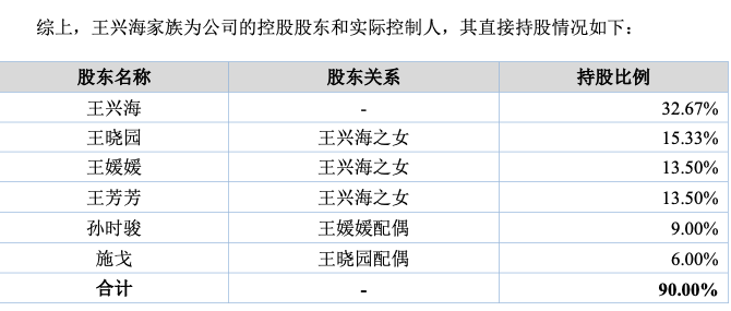 在第一轮问询中,监管层首要聚焦公司的股权高度集中问题。同时,王兴海家族成员签署《一致行动协议》,约定董事会、股东大会决策若无法达成一致,以董事长王晓园意见为准,且家族成员多人在公司担任核心职务。