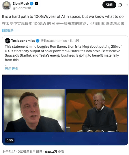 马斯克最新访谈:目标每年发射 100 吉瓦 AI 卫星