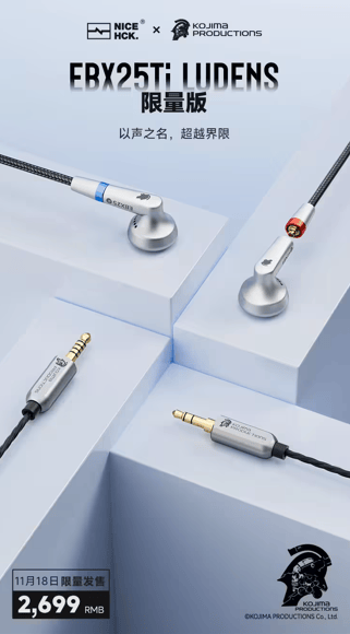 原道 × 小岛工作室联动耳机 NICEHCK EBX25Ti LUDENS 官宣,2699 元 11 月 18 日限量发售