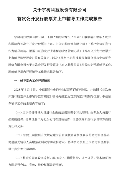 宇树科技完成 IPO 辅导,拟境内首次公开发行股票并上市