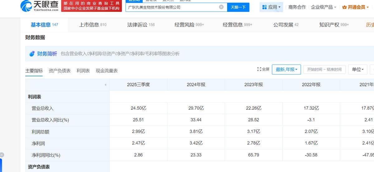 天眼查APP显示,2023年和2024年,丸美的营收增速分别为28.52%和33.44%;归母净利润增速为48.93%和31.69%,整体表现确实非常亮眼。