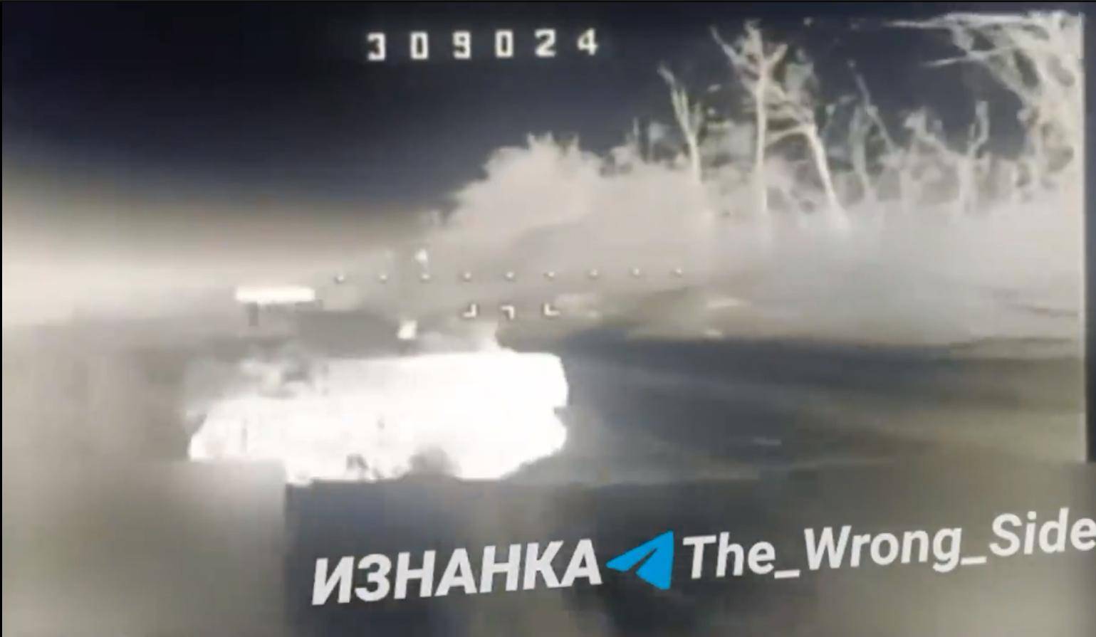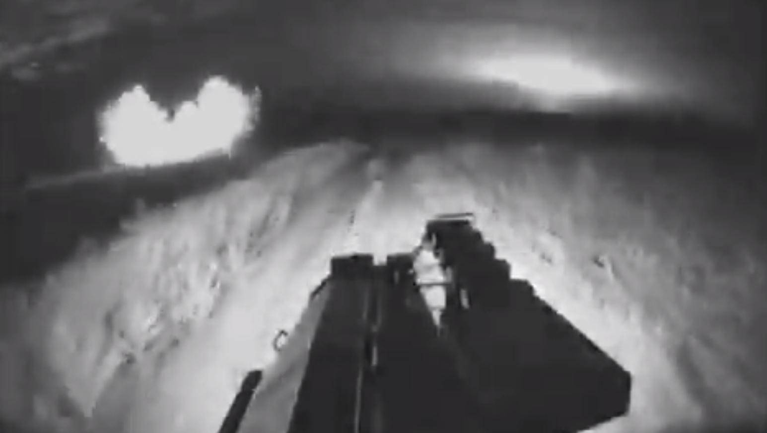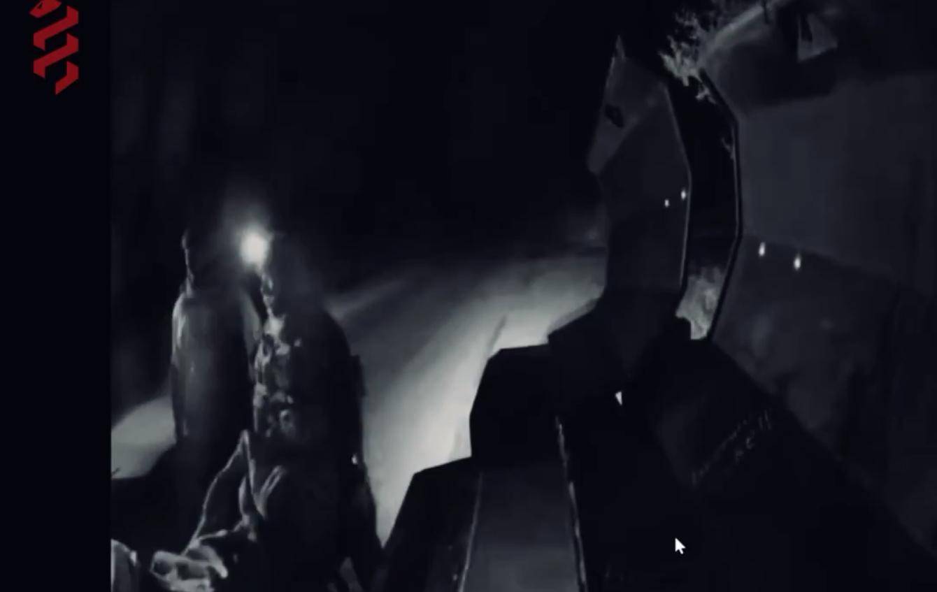 乌军公开的,无人战斗车利用深夜,大雾突击红军城的画面