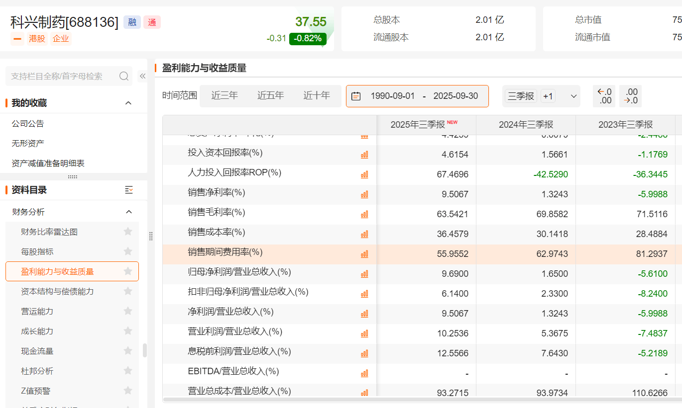 10月30日,科兴制药发布2025年三季报,报告显示,公司前三季度营业收入为11.48亿元,同比增长10.54%;归母净利润为1.11亿元,同比增长547.70%;扣非归母净利润为7045万元,同比增长190.65%;基本每股收益0.56元。