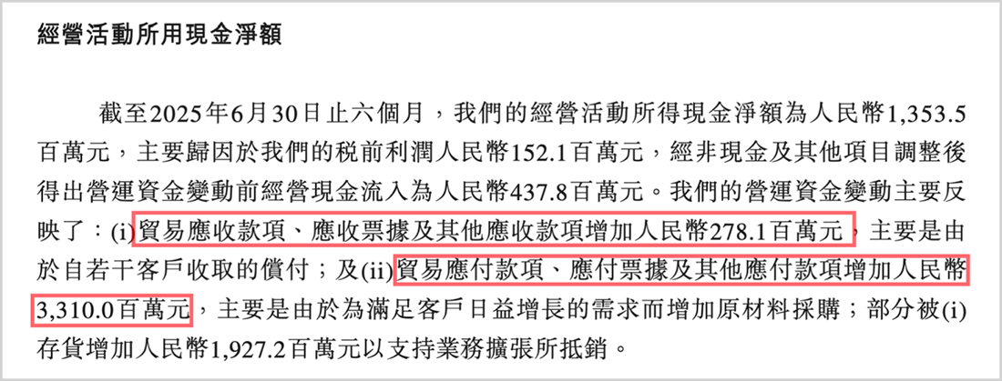 今年上半年,海辰储能经营现金流转正为13.53亿元,但仔细分析,这一变化主要因为大幅提升应付账款,增加了33.1亿元,而同期应收款项仅增加2.78亿元。