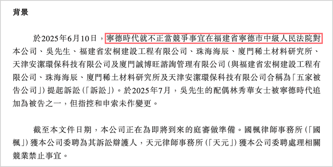 最新的一起也是金额最大的一起,是2025年6月,宁德时代将海辰储能及厦门稀土材料研究所等6名关联方,以“不正当竞争”为由,告至宁德市中级人民法院。