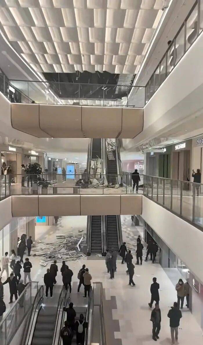 视频显示,发生吊顶脱落的地方位于商场一处扶梯上方3楼,脱落面积约30平方米,脱落的吊顶散落在扶梯上以及各楼层地面,现场扬起不少灰尘。据另一画面显示,有顾客被掉落的吊顶砸伤,可以看到伤者身旁地面上有血迹和带血的纸巾以及脱落的吊顶碎片。