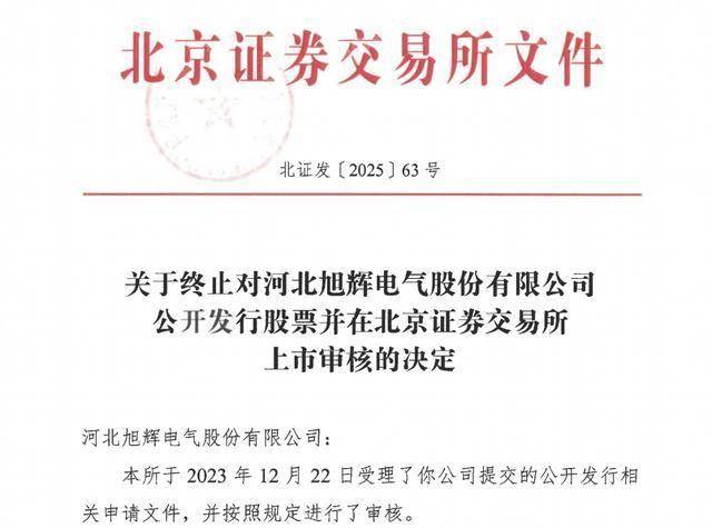瑞财经 刘治颖 11月14日消息,北交所决定终止河北旭辉电气股份有限公司(以下简称:旭辉电气)公开发行股票并在北交所上市的审核,保荐机构为国联民生证券承销保荐有限公司,保荐代表人为马骏、申佰强,会计师事务所为中喜会计师事务所(特殊普通合伙)。