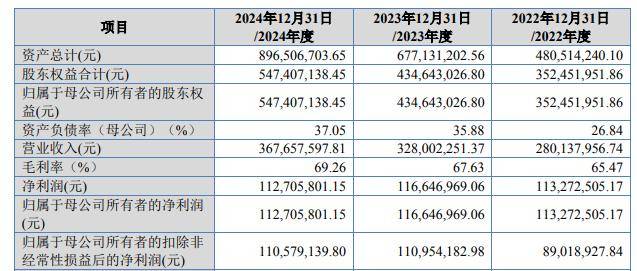 2022年至2024年(下称“报告期”),公司营业收入分别为2.80亿元、3.28亿元、3.68亿元,扣非净利润分别为8901.89万元、11095.42万元和11057.91万元。