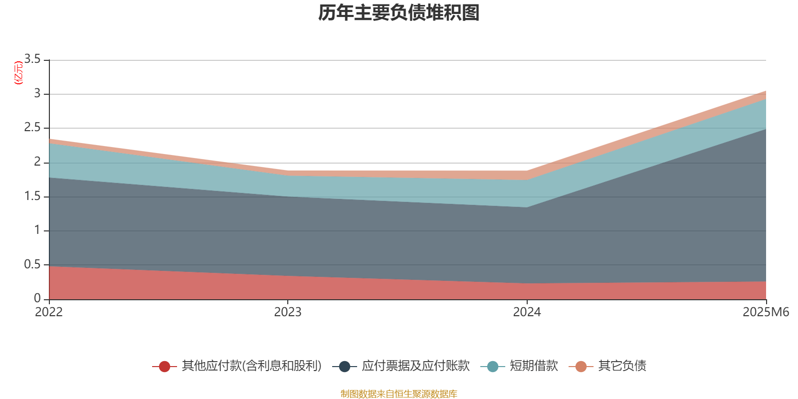 负债重大变化方面,截至2025年6月,公司应付票据及应付账款较上期末增加100.7%,占公司总资产比重上升13.4个百分点;短期借款较上期末增加10.02%,占公司总资产比重下降0.96个百分点;其他应付款(含利息和股利)较上期末增加11.66%,占公司总资产比重下降0.5个百分点;递延收益较上期末减少20.02%,占公司总资产比重下降0.37个百分点。