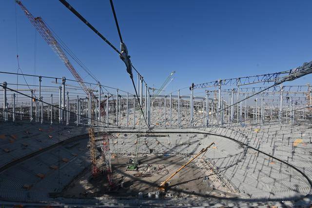 这是2021年2月13日在卡塔尔首都多哈拍摄的卢赛尔体育场屋面主体结构。