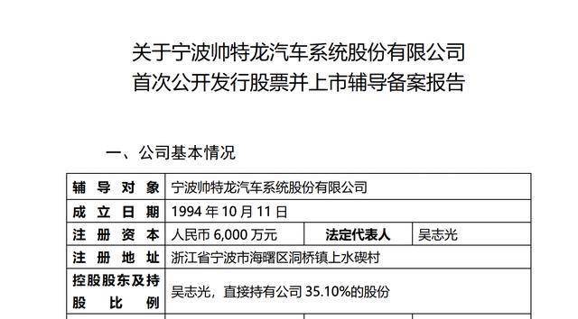 帅特龙创办于1994年,法定代表人为吴志光,注册资本为6000万元,是一家集设计、研发、制造、销售汽车功能性内外饰件总成为一体的国家高新技术企业。公司已于2025年9月挂牌新三板。