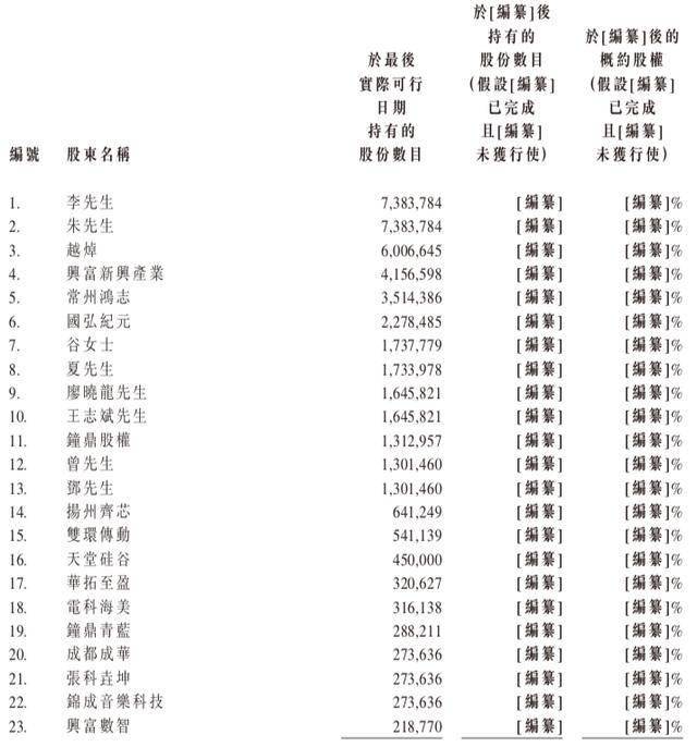 其中,李良军直接持有16.41%;朱路生直接持有16.41%;常州鸿志直接持有7.81%;谷菲直接持有3.86%;夏辉胜直接持有3.85%;曾兵直接持有2.89%;邓世海直接持有2.89%。常州鸿志作为员工持股平台,由李良军拥有约1.13%,朱路生拥有约73.21%。