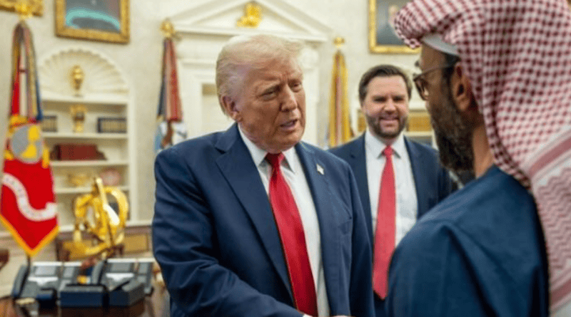 阿联酋今年3月承诺将在未来10年内对美国投资1.4万亿美元。随后,特朗普承诺每年批准向阿联酋出口50万颗英伟达先进AI芯片。