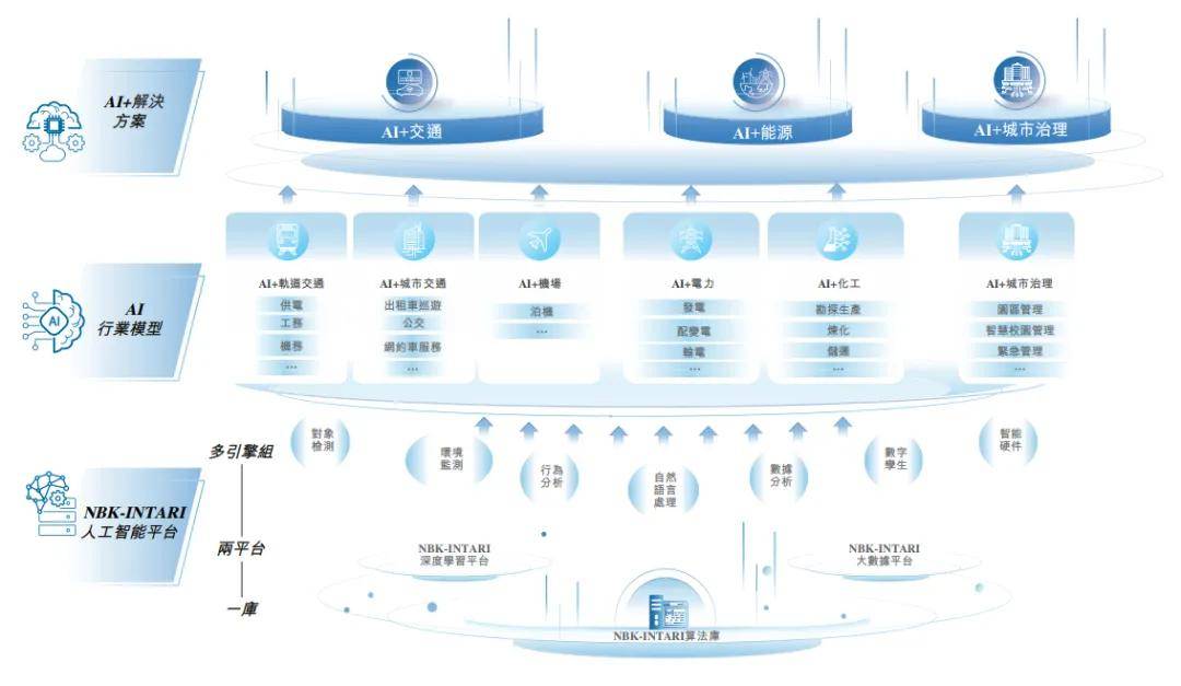 NBK-INTARI平台是诺比侃的底层技术平台,基于此诺比侃生成了各AI行业模型;AI行业模型是面向各业务场景搭建的算法模型,经过业务场景数据和行业知识的持续训练,用于解决单个维度或场景的业务问题。