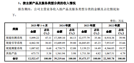 按产品及服务类型分类,易思维主要拥有视觉检测系统、视觉引导系统、视觉测量系统、其他产品等,具体情况如下: