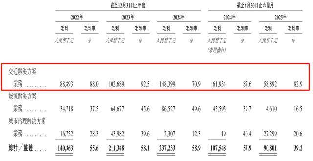 分业务来看,诺比侃业务分为交通解决方案业务 、能源解决方案业务、城市治理解决方案 业务三个板块。其中,交通解决方案业务的毛利率在2022年、2023年、2024年分别为88%、92.5%、70.9%,三年的平均毛利率有83.8%。
