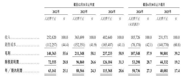 招股书显示,诺比侃2022年、2023年、2024年营收分别为2.53亿元、3.64亿元、4.03亿元;毛利分别为1.4亿元、2.11亿元、2.37亿元;期内利润分别为6316万元、8857万元、1.15亿元;期内利润率分别为25.1%、24.3%、28.6%。