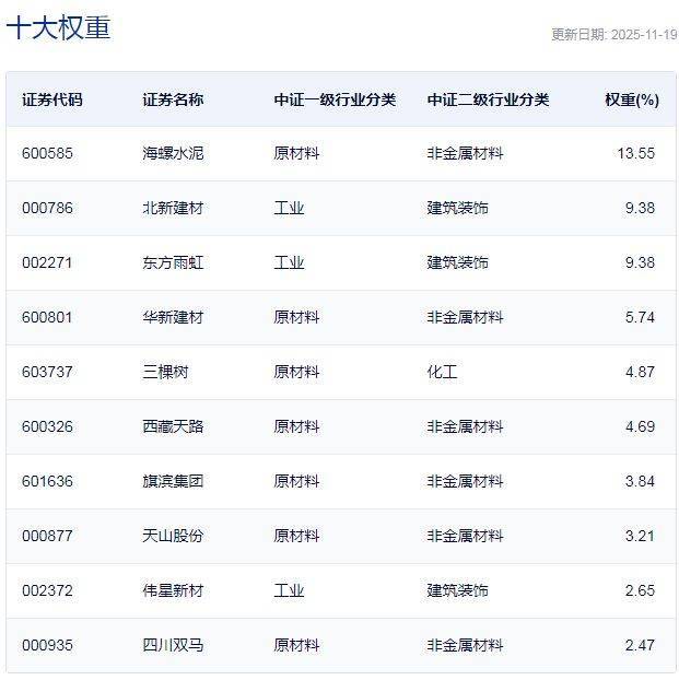 中证全指建筑材料指数从中证全指指数中选取业务涉及建筑材料领域的上市公司证券作为指数样本,以反映该主题上市公司证券的整体表现。